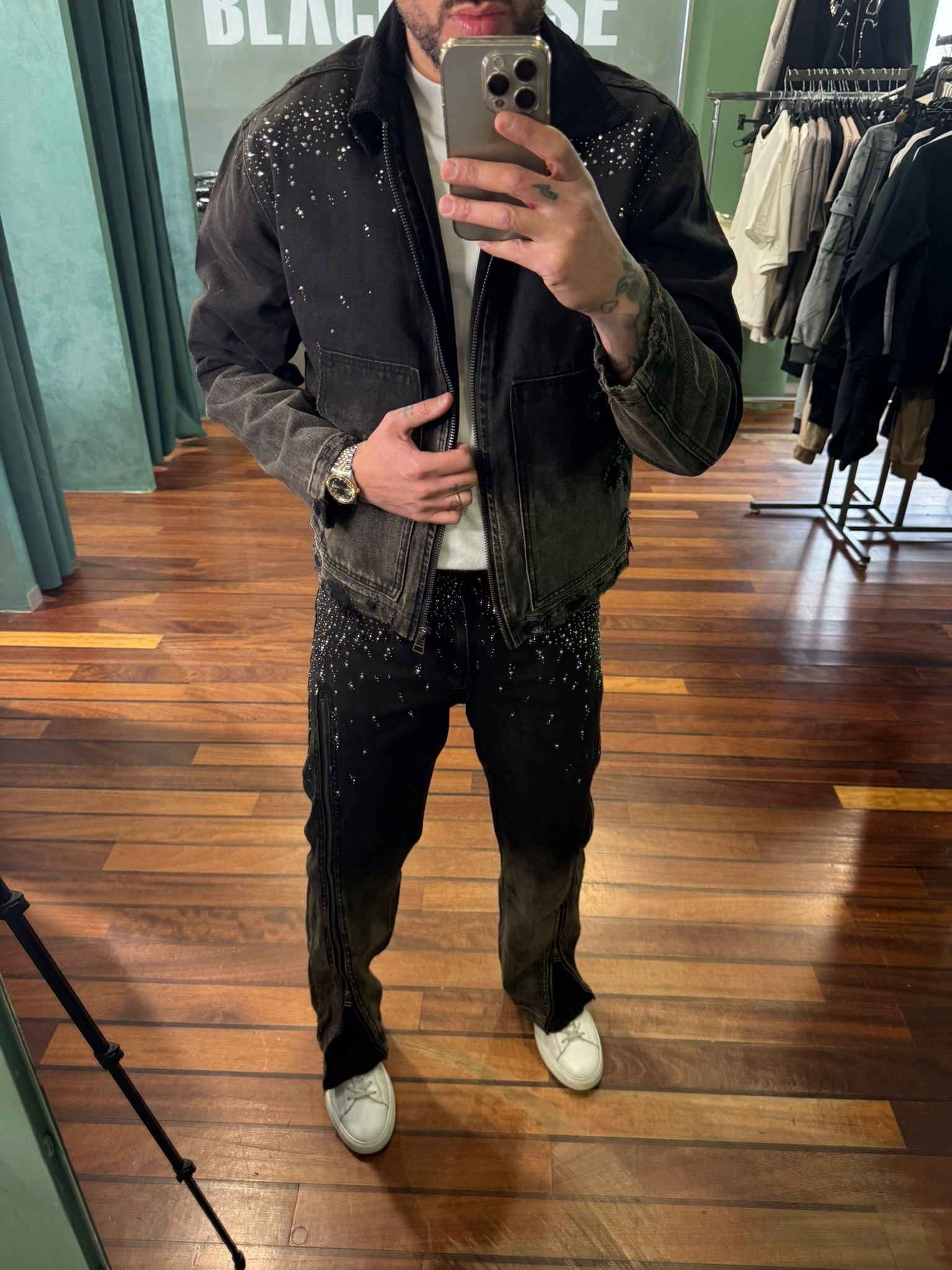 COORDINATO LEGGERMENTE OVER SIZE CON INSERTI BRILLANTI